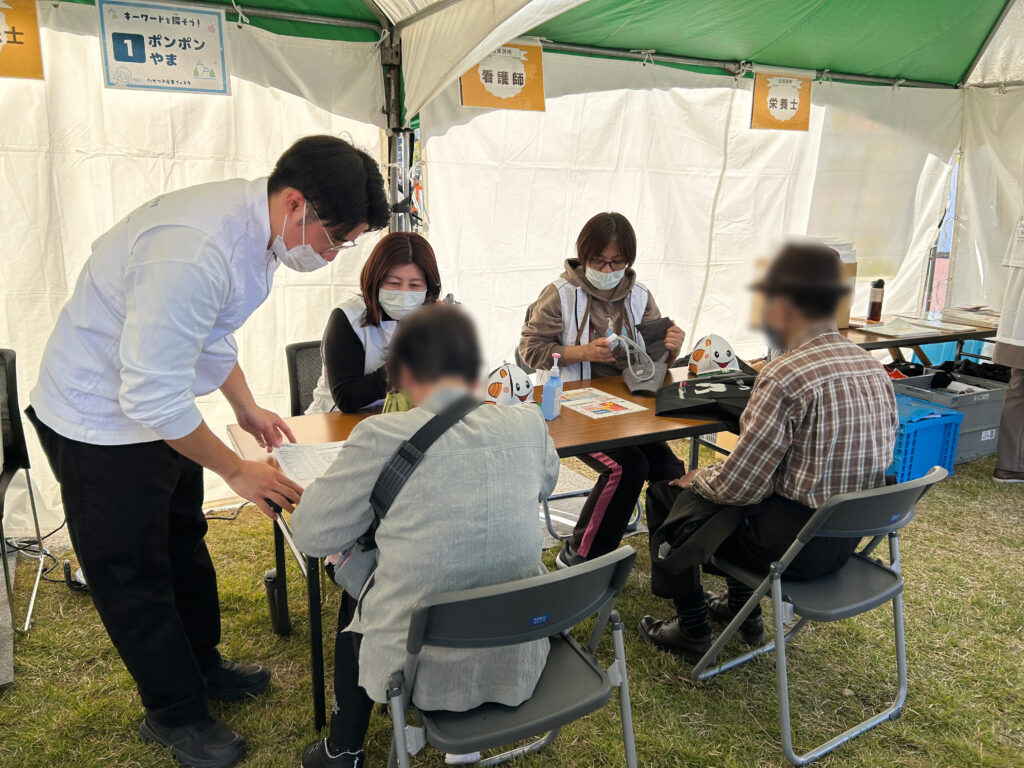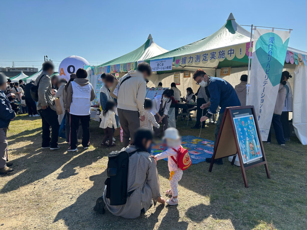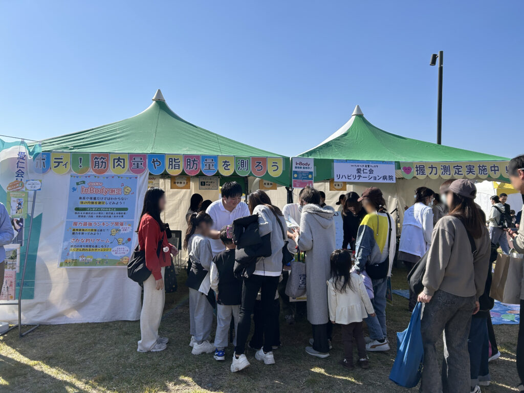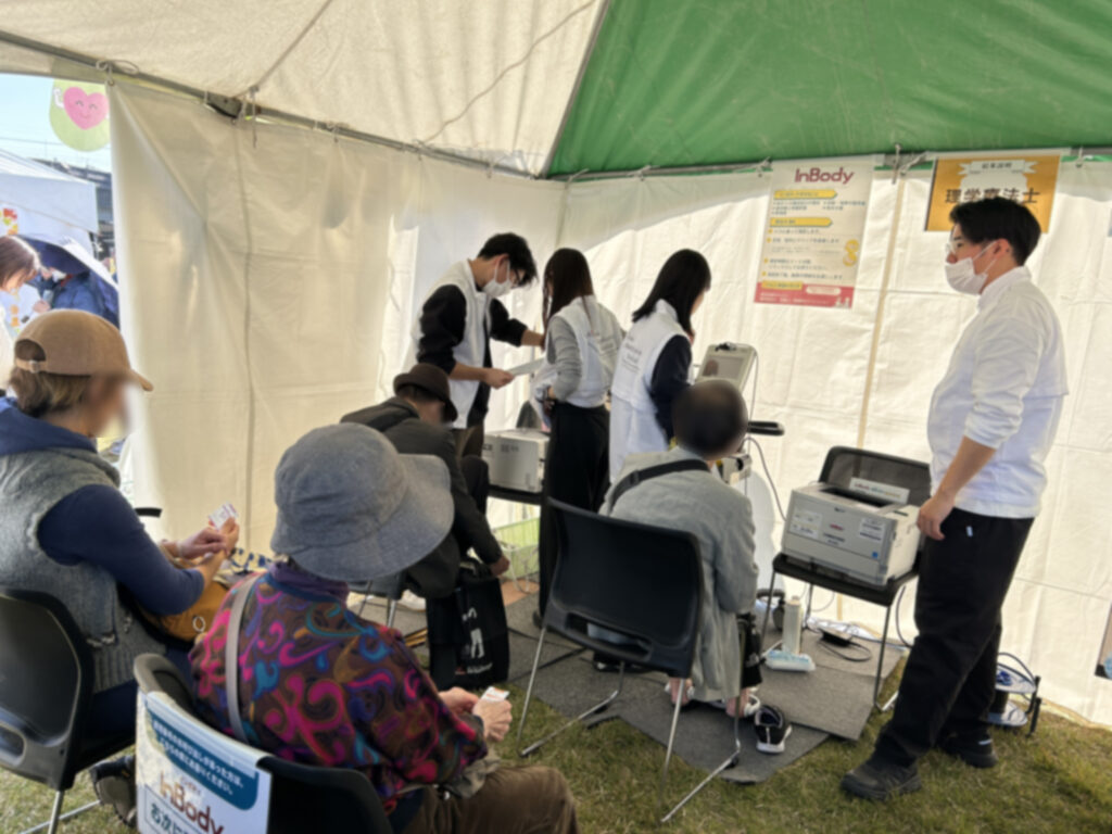 11月8日(土)に開催された「たかつき産業フェスタ」に高槻病院と合同で出展いたしました。当ブースでは「筋肉の量や握力を測って、自分のカラダのことをもっと知ってみよう」をテーマに、理学療法士や管理栄養士、看護師などがインボディ測定(筋量・筋力などを測定)や血圧測定、握力測定のほか、測定結果に基づく生活習慣や運動習慣、栄養に関するアドバイスなどを行いました。