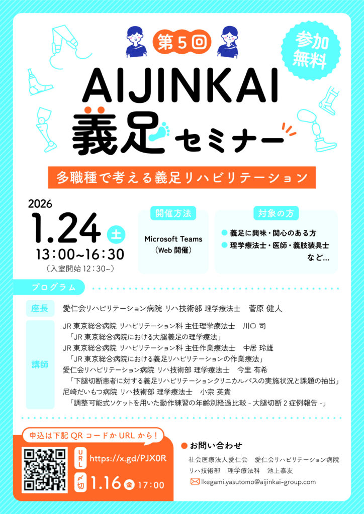 2026年1月24日(土)13:00~16:30よりMicrosoft Teams(Web)にて第5回 AIJINKAI義足セミナーを開催します。